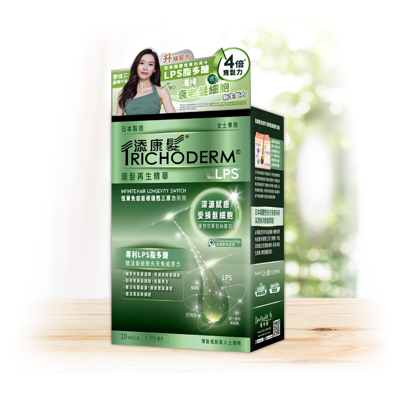 添康髮®頭髮再生精華女士專用是新一代的臻稀免沖洗精華,嶄新育髮配方含專利及經臨床驗證的LPS(脂多醣)、米胚芽萃取多胺及NMN,啟動恆菁免疫髮根復甦三原力開關: