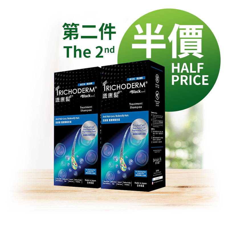 透過喚醒髮細胞深度再生潛能技術,添康髮®黑色系列 男士專用活髮洗髮露揉合新一代臻稀免沖洗頭髮再生精華,能提升5項頭髮的豐濃度: 豐盈、密度、強韌、髮質及持續力。