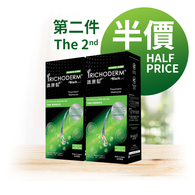 透過喚醒髮細胞深度再生潛能技術,添康髮®黑色系列 女士專用活髮洗髮露揉合新一代臻稀免沖洗頭髮再生精華,能提升5項頭髮的豐濃度: 豐盈、密度、強韌、髮質及持續力。